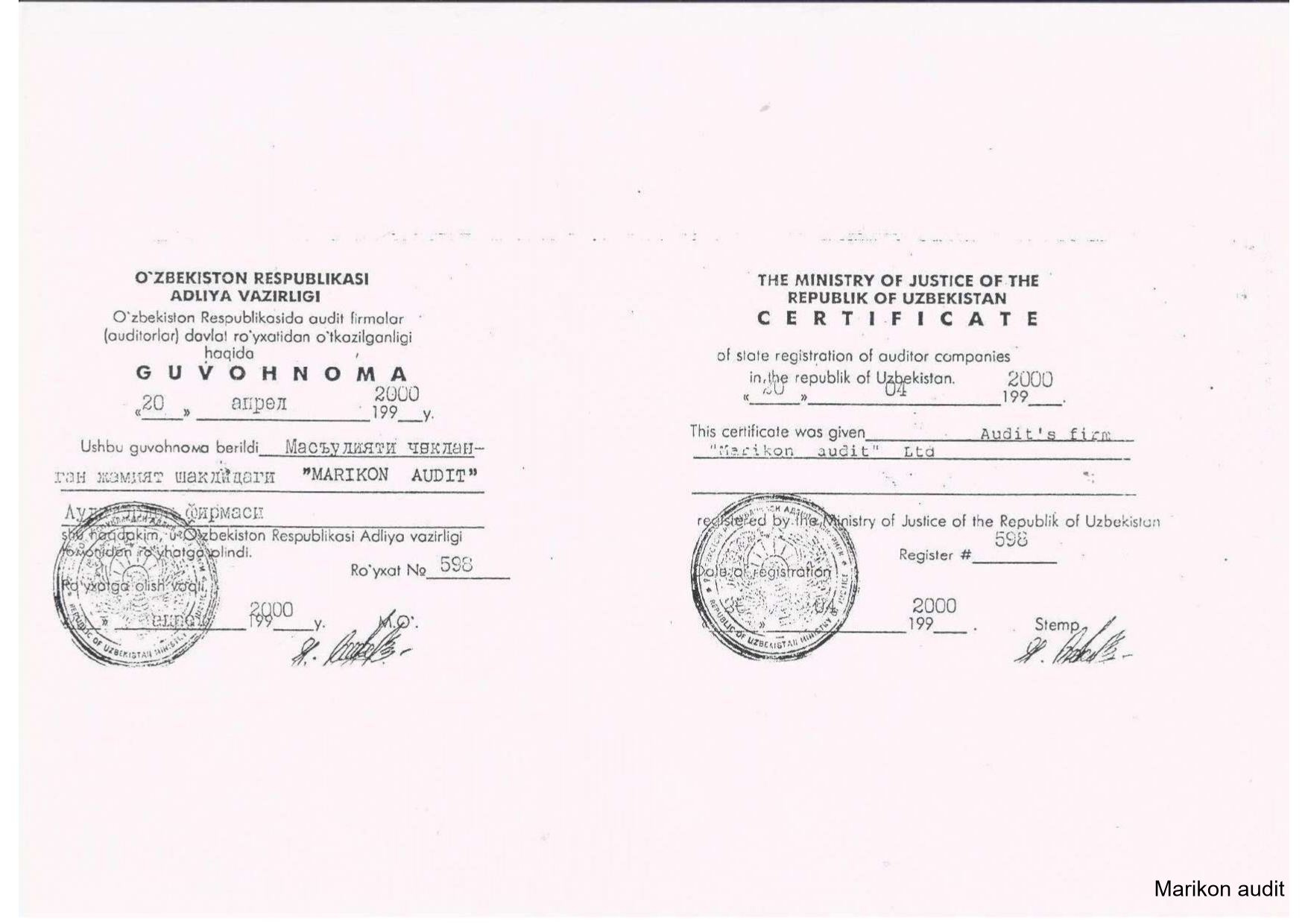 Закон Республики Узбекистан от 09.12.1992 г. N 734-XII «Об аудиторской деятельности» (Новая редакция. Утверждена Законом РУз от 26.05.2000 г. N 78-II) Статья 18. Аудиторский отчетАудиторский отчет должен быть подписан постранично аудитором (аудиторами), осуществлявшим аудиторскую проверку, и руководителем аудиторской организации. (Часть в редакции Закона РУз от 30.04.2013 г. N ЗРУ-352) | Если аудиторский отчет не подписан постранично аудитором и руководителем аудиторской организации это влечёт недействительность аудиторского отчёта. |